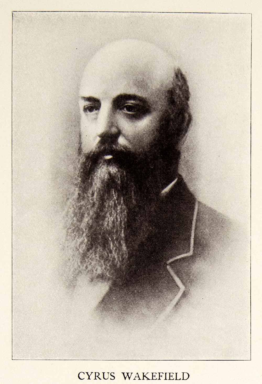 This is an original 1926 black and white halftone print of Cyrus Wakefield (1811-1873) who was a manufacturer of rattan furniture and was the founder of the Wakefield Rattan Company. Eventually, this company merged with the Heywood Brothers Company and became the Heywood Brothers & Wakefield Company in 1897. By 1921, it was known as the Heywood-Wakefield Company. Furniture from this company is considered to be very collectible.