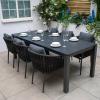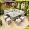 This outdoor sofa set is manufactured from powder coated aluminium frames, which are rust resistant and strong along with UV and weather resistant flat and round weave rattan.