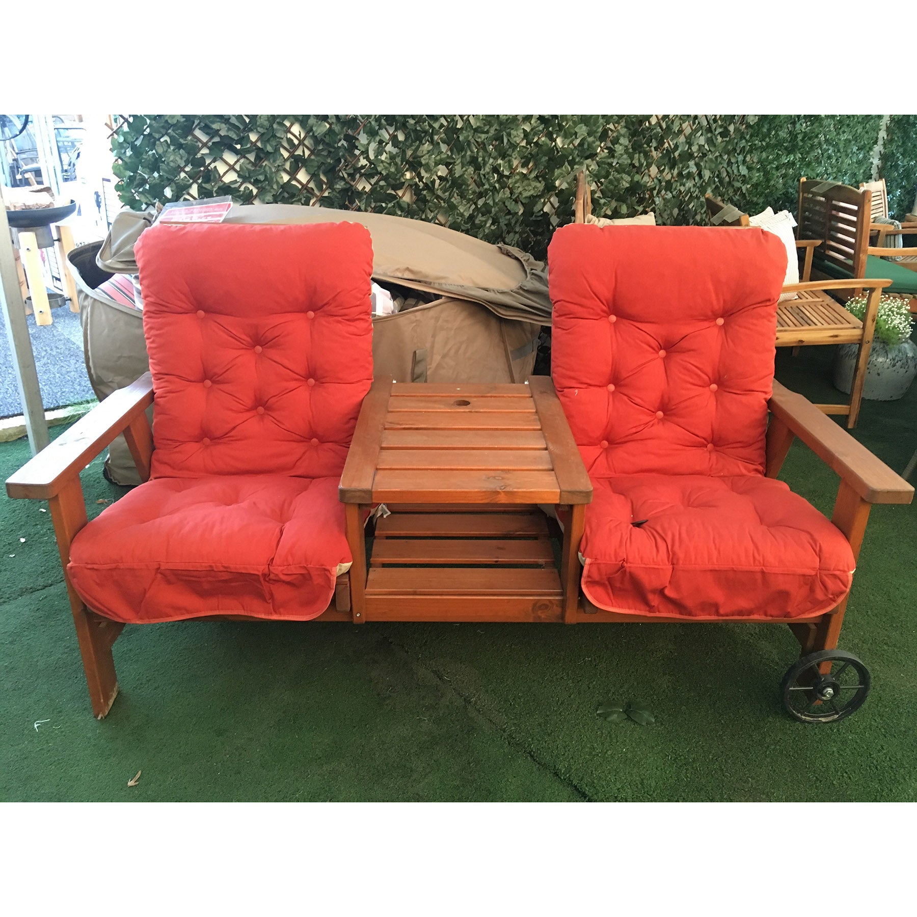 Comes complete with shower proof cushions, wheels for easy movement and a convenient parasol hole.