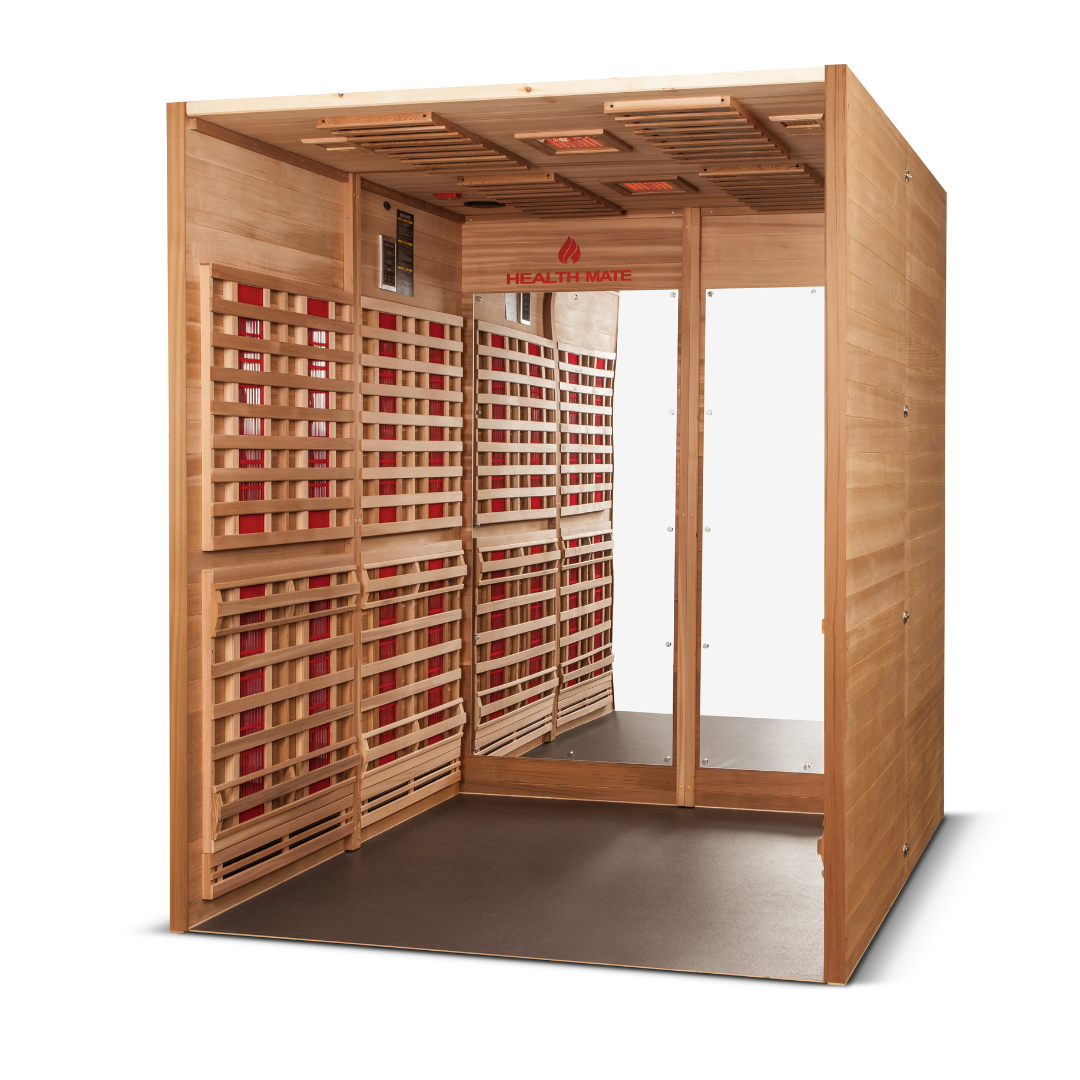 De Health Mate Infraroodcabine HM-SPORTSAUNA Professional is een luxe infraroodcabine die je gezondheid een boost geeft, gemaakt uit canadees rood cederhout (binnen- en buitenkant).
