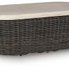 - All-weather resin wicker handwoven over rust-resistant aluminum frame with durable powder coated finish