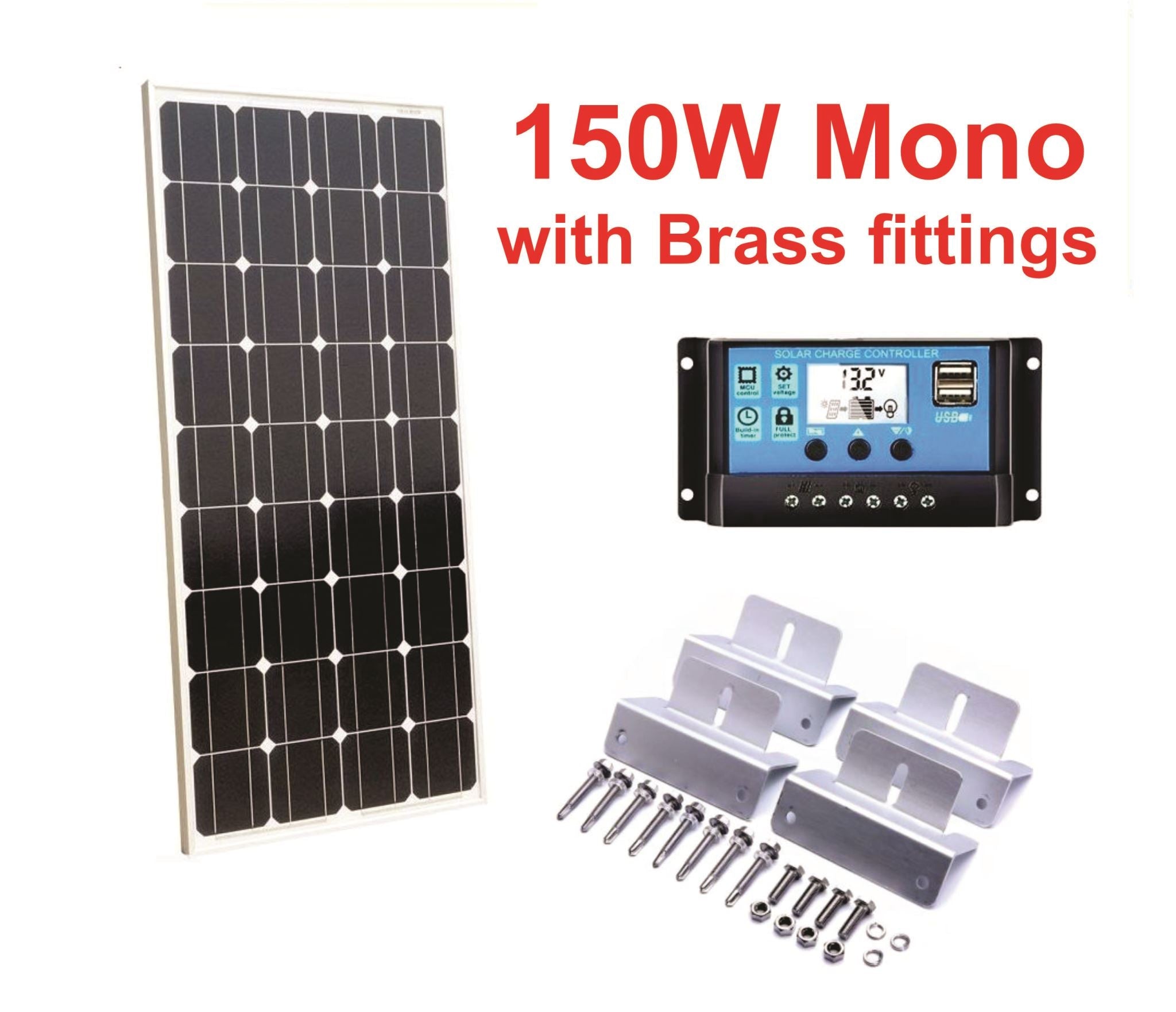 New 150 Watt 12-18 Volt Monocrystalline Solar Panel for House, RV, Boat, Back-Up System, With Controller